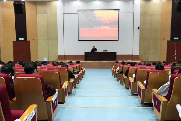 4月26日下午,人文系主任高旭国教授在图书馆报告厅为学院师生作题为《文学与人生》的专题讲座。讲座由图书馆馆长施必青主持。