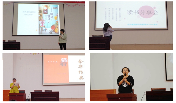 报告会上,十七位参赛选手与在场的老师同学们分享自己的读书感悟和心得体会,他们通过演讲、视频、PPT等形式,通过交流书籍中的精彩段落,向大家分享、解读自己喜爱的书籍,并将自己对书籍的文化魅力与阅读的独特体验向大家精彩展示。本次读书报告会,来自经济管理系财务管理161班的金悦同学凭借自己对读书的独特感悟,赢得了广大师生的喜爱,最终获得一等奖;经济管理系傅丹丹和孙玲洁同学获得二等奖;生物环境系张婷、许铭珊和周思贤三位同学获得三等奖;另外,徐铮磊、张婷和周思贤三位同学分别获得最佳表现奖、最佳气质奖和最佳创意奖。现场还评选出优秀奖若干名。评委老师为获奖的同学颁发证书与精美书籍。