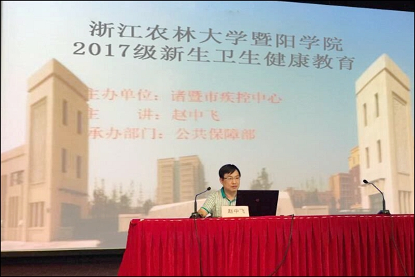 为进一步普及传染病预防知识,提高学生对传染病的预防能力,有效预防与控制传染病的发生与蔓延,确保学生的身心健康,9月12日、13日下午,学院邀请诸暨市疾控中心防疫科科长赵中飞为威廉希尔官网2017级新生开展卫生健康教育。