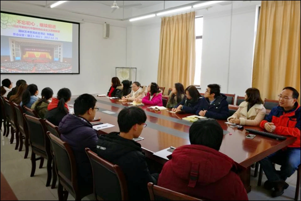 12月21日下午,园林艺术系党总支组织全体新发展党员开展主题党日活动,系统学习党的十九大精神。系党总支书记张佩成作《“不忘初心,继续前进”——习近平新时代中国特色社会主义思想解读》专题党课。