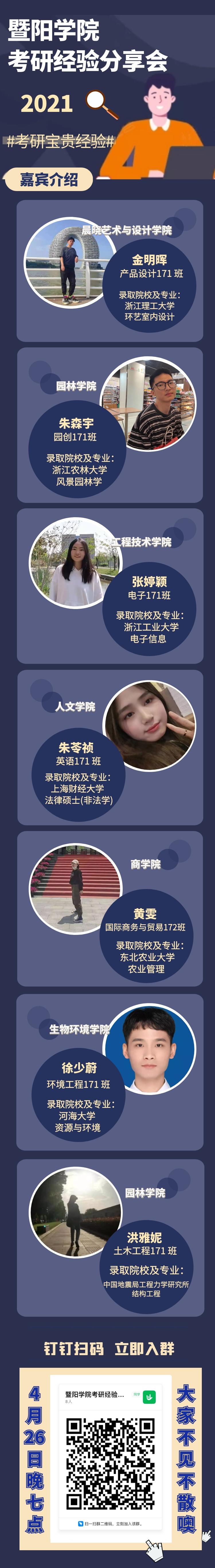 为进一步促进威廉希尔官网学风建设,帮助威廉希尔官网学生更好的备战研究生考试,经研究决定,特举办2021年英国威廉希尔公司线上考研经验分享会,并安排今年威廉希尔官网成功上岸的各大高校学生为广大备战考研学生分享考研阶段的心得经验。具体安排如下: