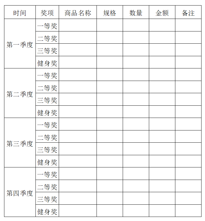 投标单位应根据一个季度一换按月发放组合报价(即今年4个组合的报价),折扣后的每份价值总额不超过表格中各个奖项的金额。所有商品的保质期必须在一年以上,同一种商品的名称及规格型号必须一致。