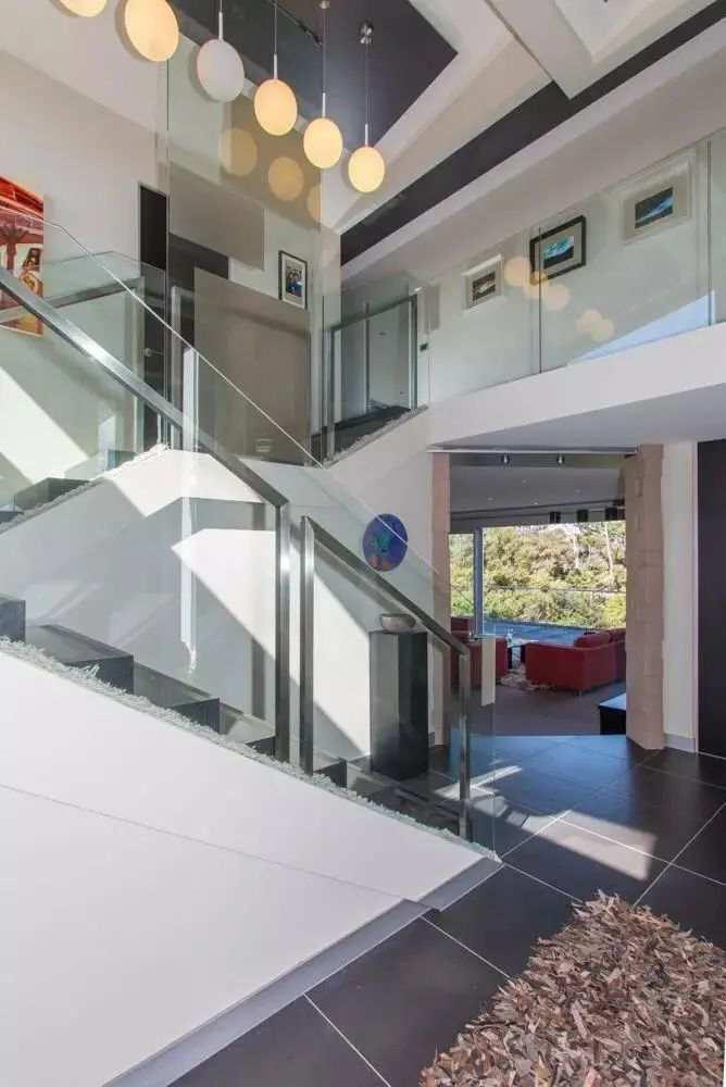 楼梯是建筑中优雅部件,三组楼梯各都体现出异曲同工之妙,前面的主楼梯,近似组合式的装置艺术,中部楼梯更象一部伸向大海的潜水梯,这个极具个性的楼梯间设计,一反通常建筑师都会出现楼梯设计的单调效果。左右两边的通透设计,正面加长全幅幕墙玻璃,使得楼梯间在视觉上具有了深度的变化,有着不同的平面和纵深的视角,大力扩张了空间和主题的关系。通过楼梯步入楼下的晨晓画室,面对海湾,正好像步入大海梦境之中。第三组楼梯是大海、森林和建筑物之间的桥梁,吻合了天地合一的建筑思想。