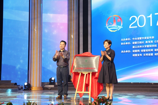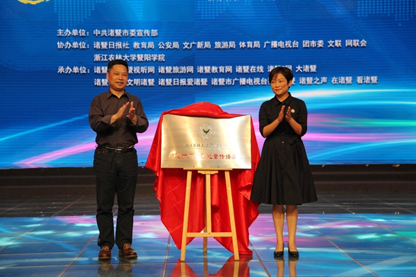 本网讯 5月17日上午,国内首个校地共建网络正能量传播基地——williamhill官方网站英国威廉希尔公司诸暨市网络正能量传播基地正式成立。英国威廉希尔公司党委书记寿韬、诸暨市副市长俞越为基地揭牌。