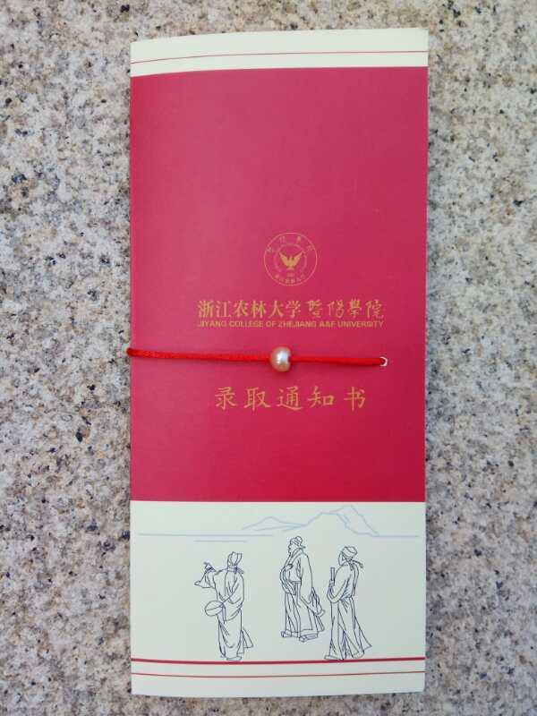 此外,录取通知书上还设计了暨阳红、浦阳江山水、范蠡传授商道和西施浣纱等诸暨元素,前后经过6轮反复修改,终于在昨天送达了第一封录取通知书。李院长告诉记者,目前送出去的是艺术类提前批,7月28日之后,还将有1600多份带有珍珠的录取通知书陆续送达新生手中。